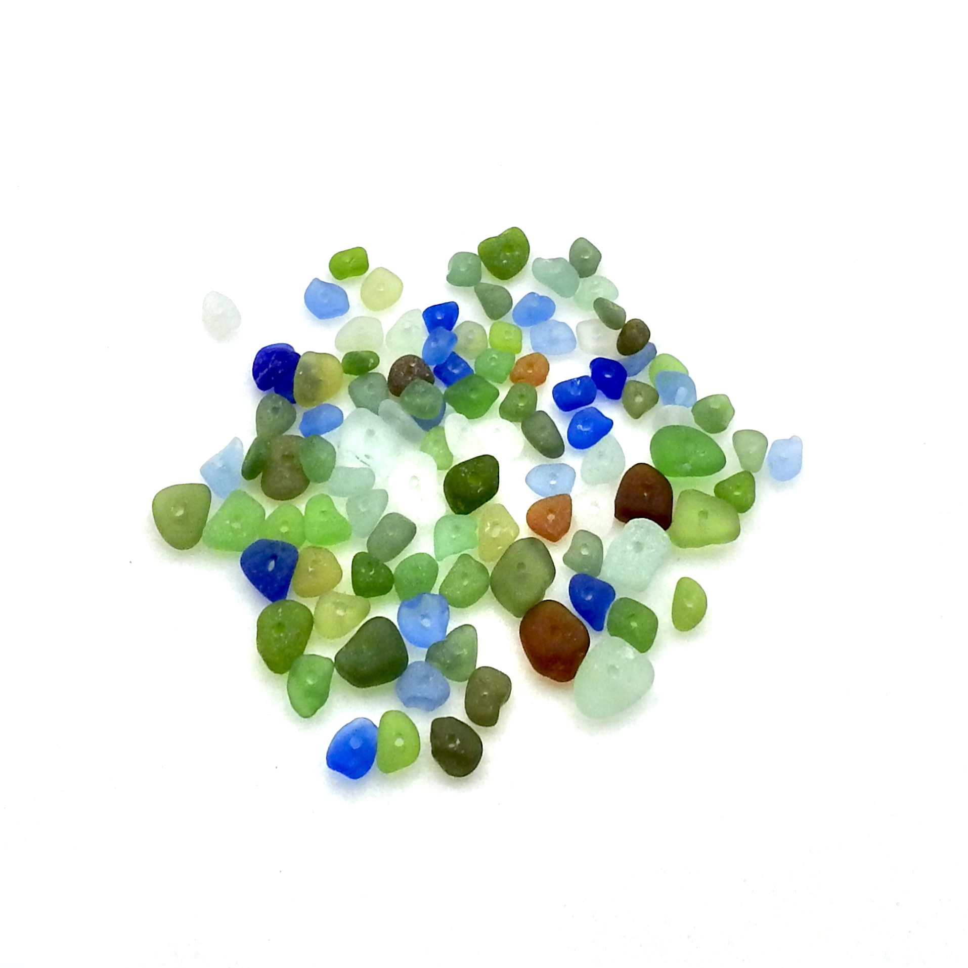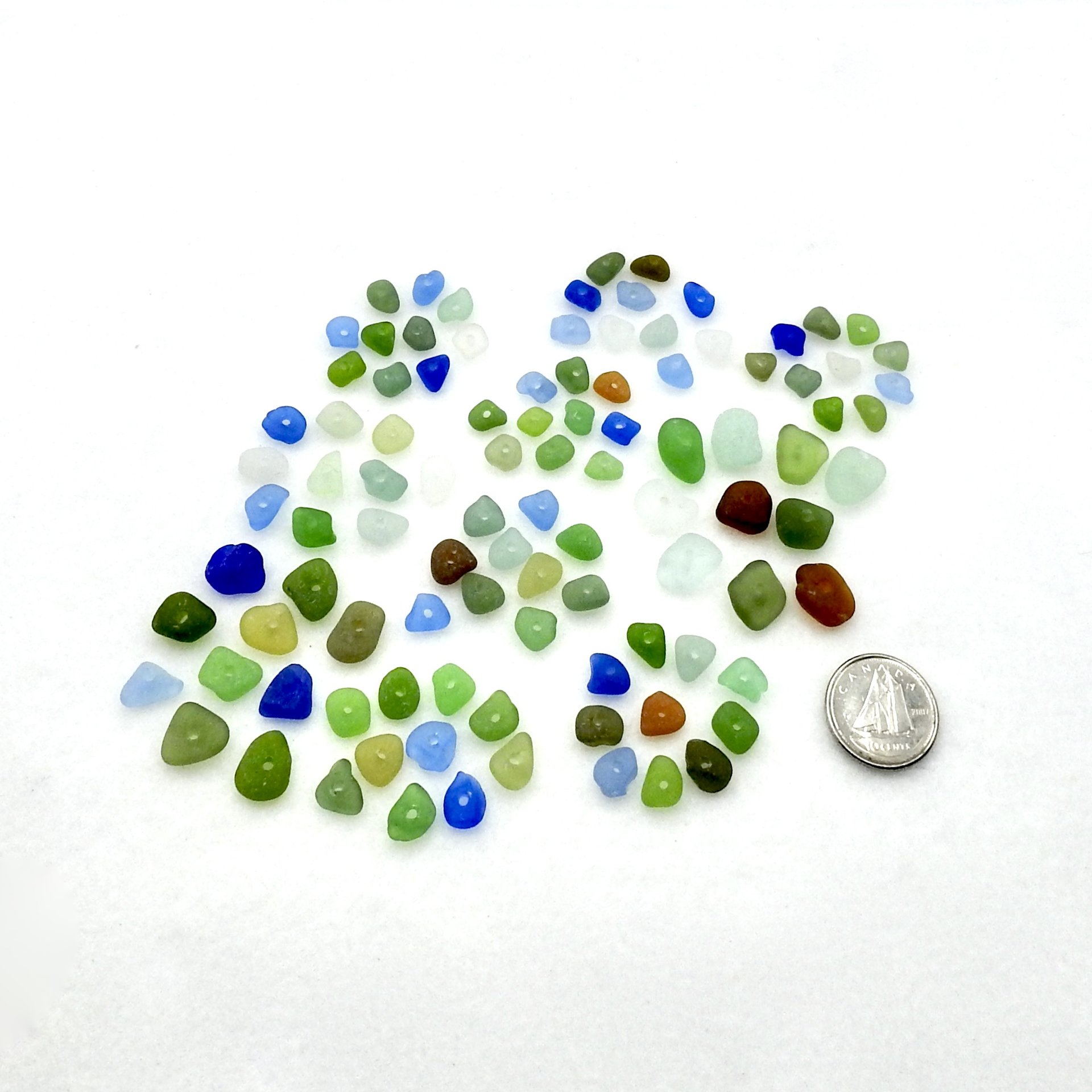 Tiny genuine sea glass beads, bulk lot of 100, with centre drilled holes for jewelry making or other DIY beach craft projects.