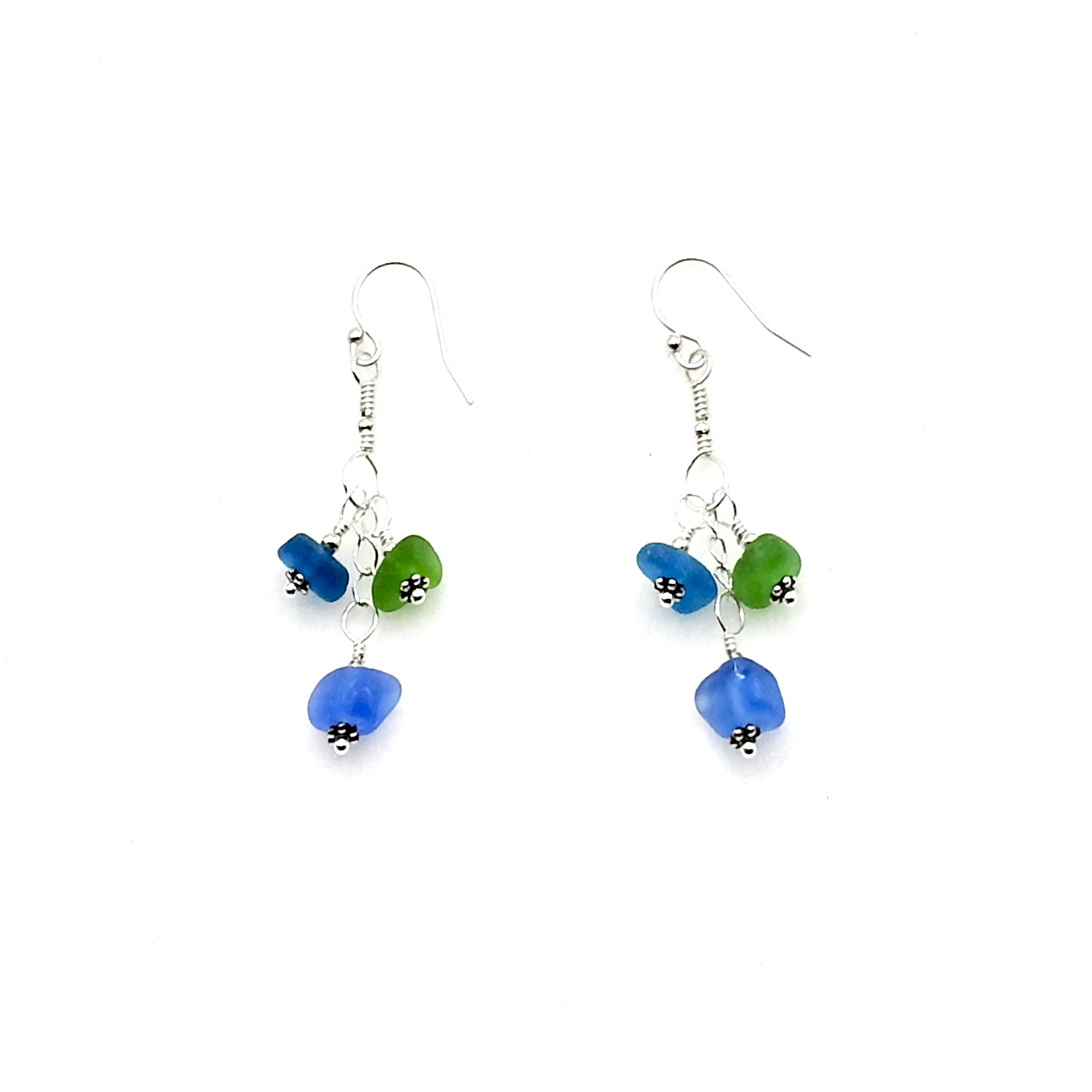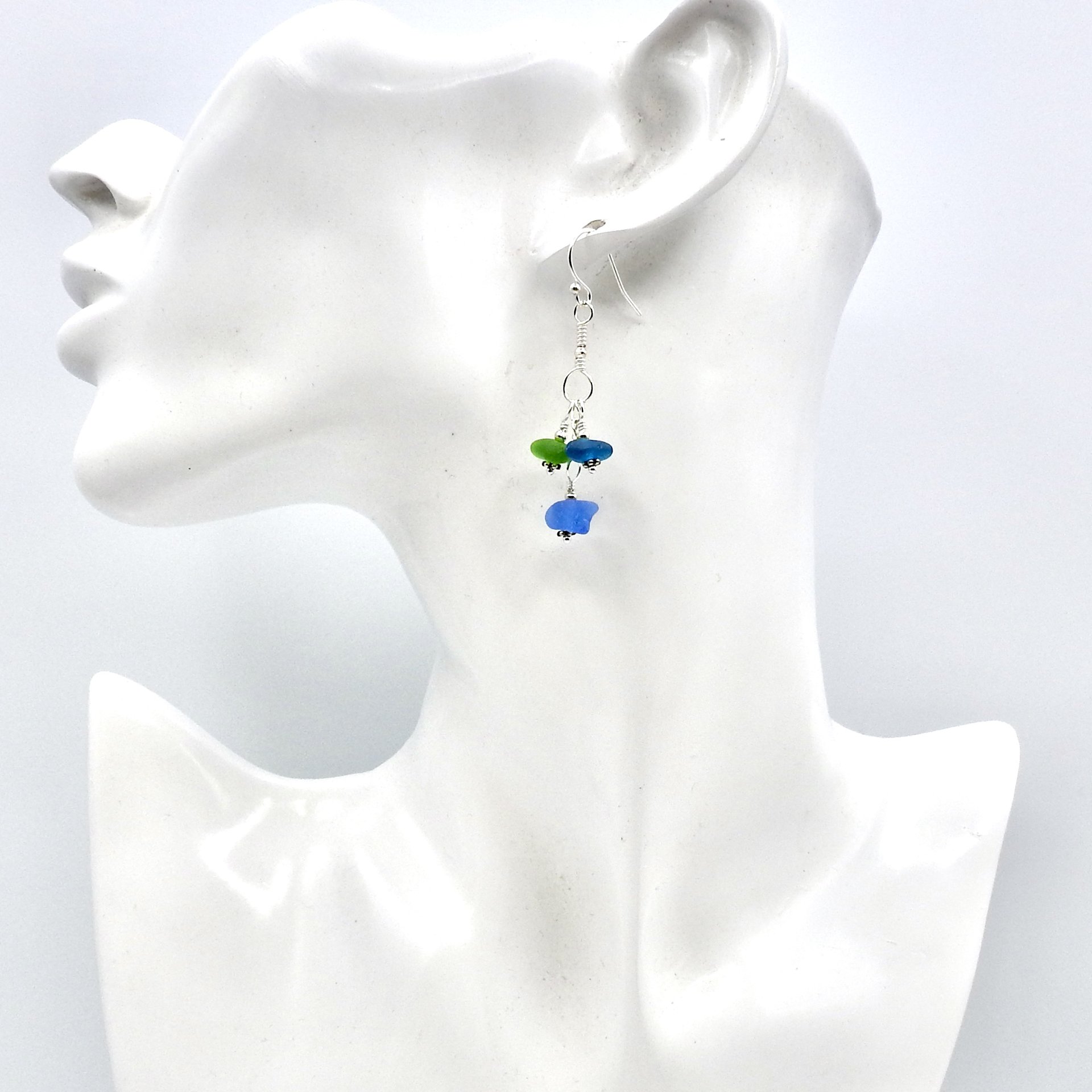 Sea Glass Earrings Tri Drop Handmade Jewelry for Women Girls